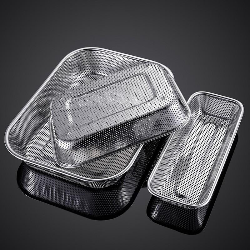 Rổ inox hình chữ nhật rửa hoa quả rau củ Giá inox 304 đa năng