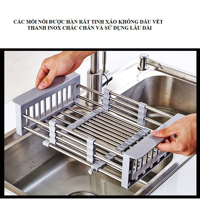 Rổ inox rút gọn - Khay inox gác bồn rửa tiện dụng-Chất liệu inox kết hợp cùng nhựa ABS cao cấp, gia công kỹ lưỡng, chịu được tải trọng cao.