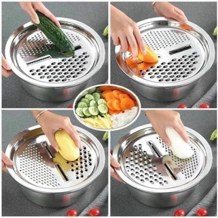 Nhà cửa & Đời sống > Dụng cụ nhà bếp > Bàn nạo, dụng cụ bào, cắt || Bộ rổ nạo inox 304 đa năng 3 in 1 dụng cụ bào sợi rau củ thau, rổ bền đẹp cho nhà bếpCòn hàng