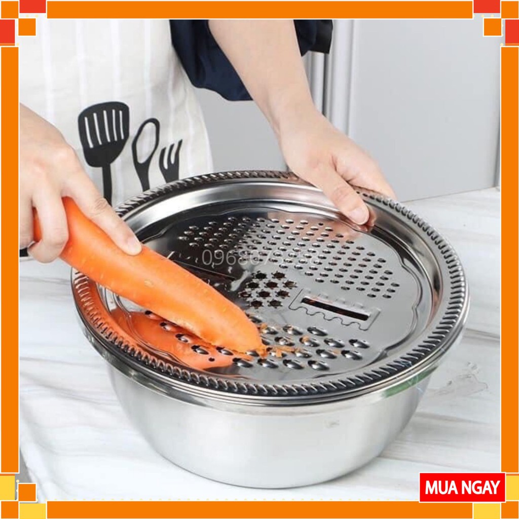 Nhà cửa & Đời sống > Dụng cụ nhà bếp > Bàn nạo, dụng cụ bào, cắt || Rổ Nạo Inox Nạo Rau Củ Đa Năng 3 Trong 1 - Bộ Bào Nạo Rau Củ Kiêm Rổ Và Chậu Inox Đa NăngCòn hàng