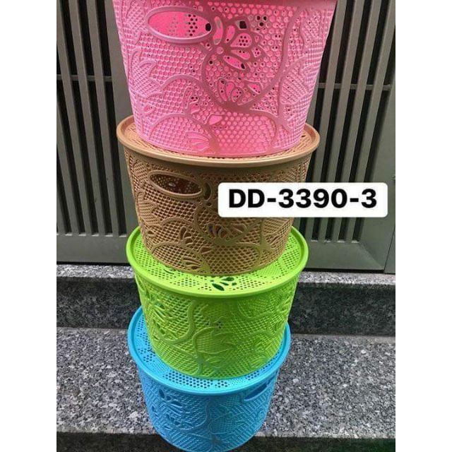 -Rổ nắp tròn 3390 – 1: Miệng 21.5 * Đáy 18 * Cao 12cm