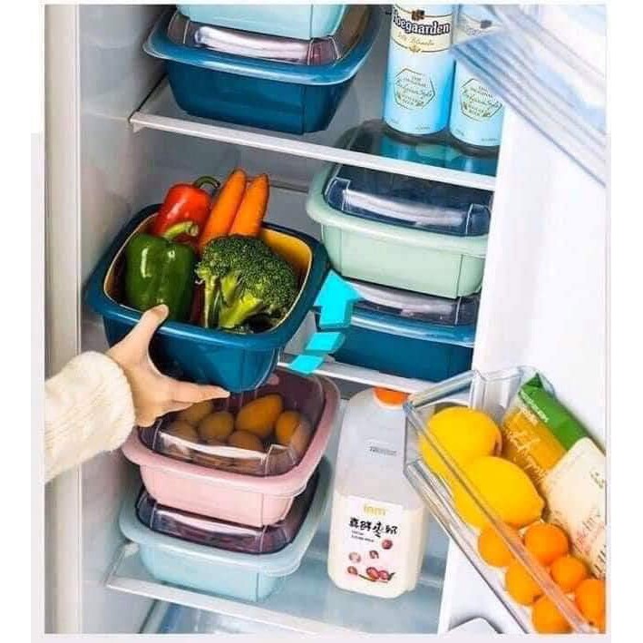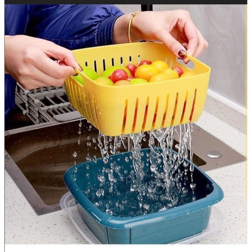 - Vừa làm rổ, vừa làm chậu rửa rau, lại vừa làm hộp để thức ăn trong tủ lạnh
