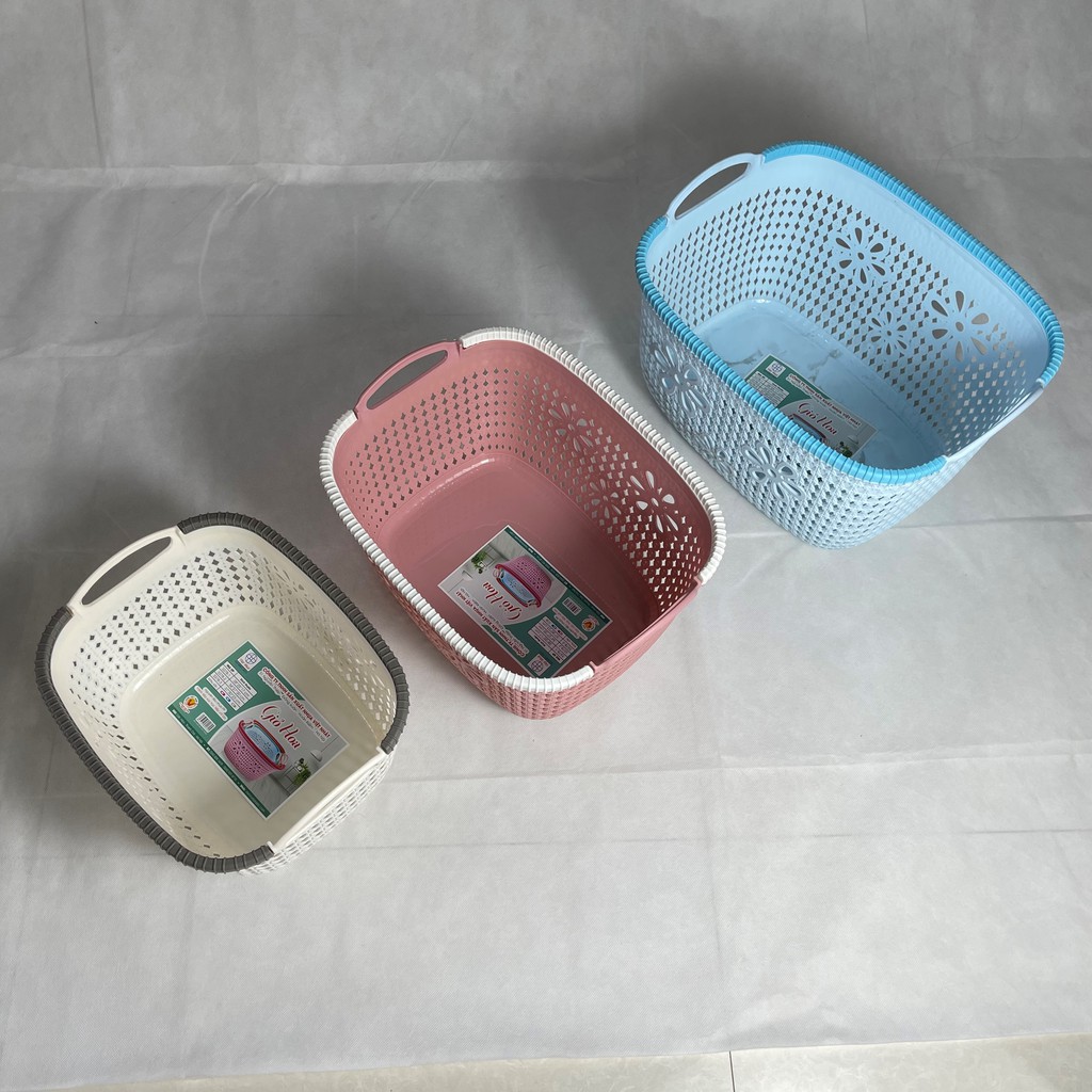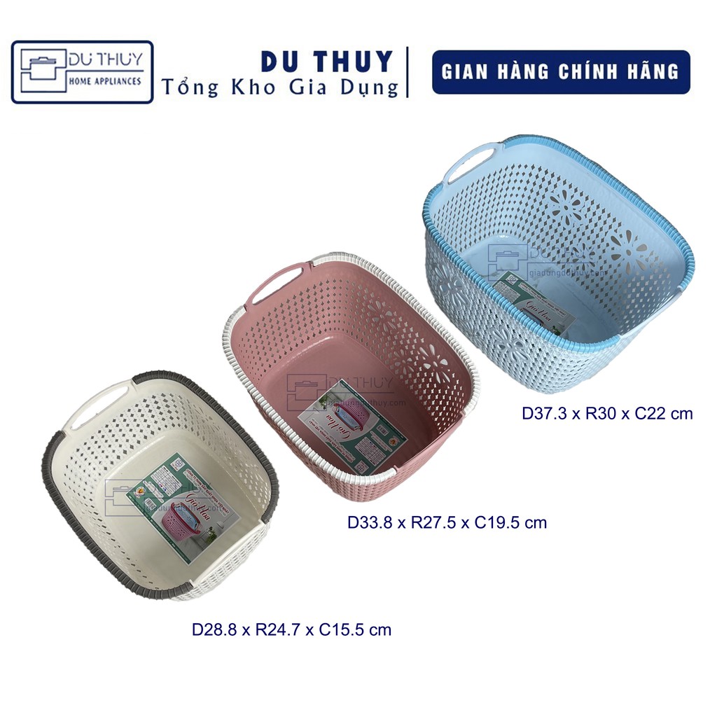 Nhà cửa & Đời sống > Nội thất > Tủ bếp || Rổ nhựa giả đan mây có quai cầm Việt Nhật nhựa nguyên sinh đựng mỹ phẩm, đựng vật dụng gia đình của Gia Dụng Du ThủyCòn hàng
