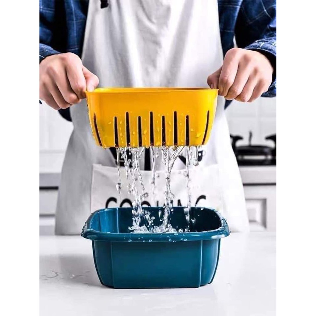 🔔🔔🔔🔔Bộ rổ nhựa kèm chậu có nắp đậy🎀🎀 Rổ nhựa kèm chậu 2 trong 1