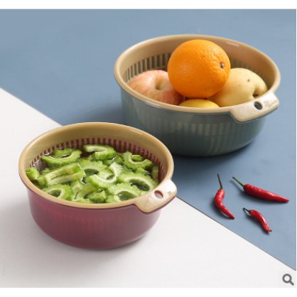 Rổ Nhựa Đa Năng 2 Lớp Kèm Chậu Rửa Rau Củ Quả Tiện Dụng- Chất liệu: nhựa PP