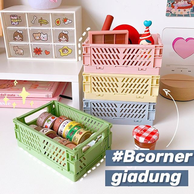 Thùng nhựa xếp superrr cưngg~~~ 🌸 giúp căn phòng vừa gọn gàng lại xinh xắn hết cỡ 💃🏻 Có thể xếp chồng lên nhau để tiết kiệm diện tích hoặc gập gọn lại lép xẹpppp khi không dùng tới hoặc khi cần vận chuyển. Siêu tiện lợi!!! 💕.