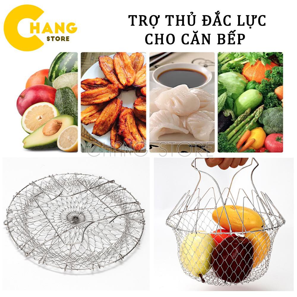 - Chất liệu thép không rỉ, giúp kéo dài tuổi thọ của rổ. Bạn có thể sử dụng Rổ chế biến thực phẩm đa năng thay cho Rổ chiên, Vỉ hấp, Vỉ nướng, Giỏ đựng...Rổ Nhúng Thông Minh Chef Basket