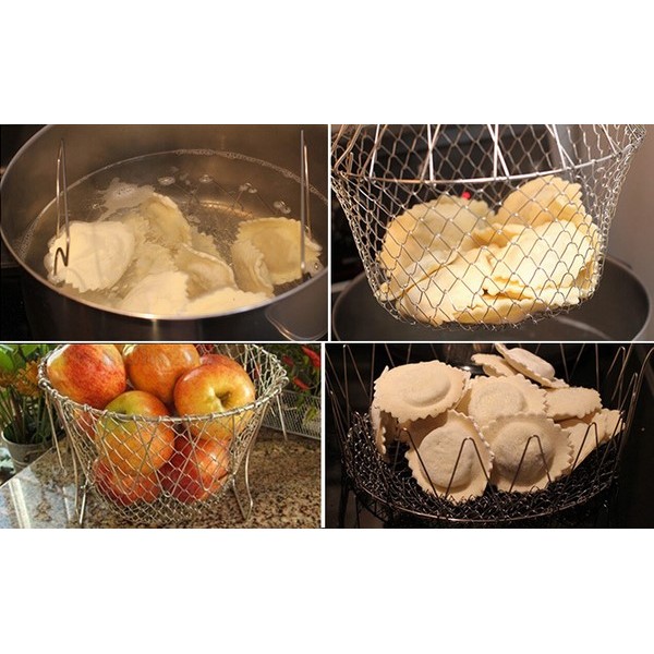 Rổ thông minh Chef Basket hàng loại 1 chắc chắn dầy dặnThiết kế thông minh dễ dàng biến hóa thành nhiều công cụ giúp bạn luộc, chiên thức ăn đơn giản và nhanh hơn. Hay biến thành một chiếc rổ tiện lợi, giúp thực phẩm luôn khô ráo.