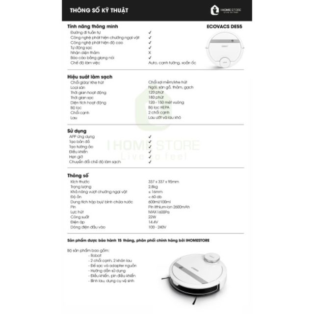 Còn vài con Ecovac Deboot DE53, DE55 thanh lý cho các bác. hàng trưng bày mẫu cho khách, gần như mới nguyên, chưa sử dụng, nguyên đai, nguyên hộp, phụ kiện đầy đủ nguyên nilon, không bớt phụ kiện.Chức năng chính: