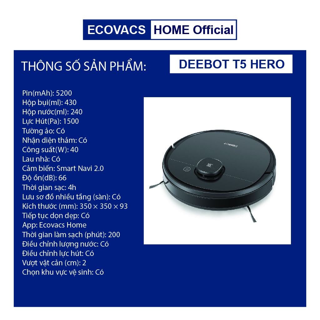 ✅ Robot Hút Bụi Lau Nhà Ecovacs Deebot T5 Hero chính hãng- Robot Hút Bụi Thông Minh