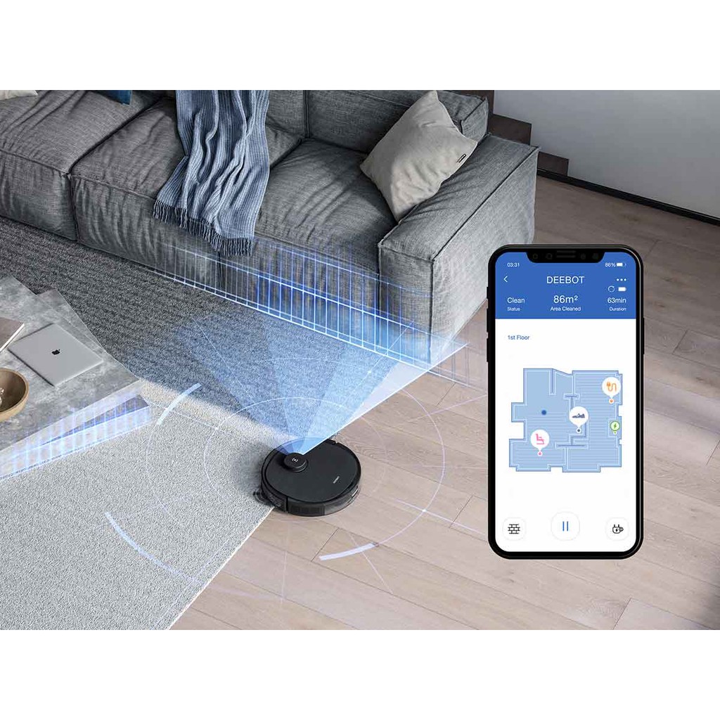 _Robot lau sàn OZMO T8 AIVI được trang bị cảm biến laser kèm theo mới nhất. Điều này giúp Robot có thể phát hiện các vật thể nhỏ tới mức 2 mm, vật màu đen và tường. Khoảng cách phát hiện siêu dài 10 mét cho phép lập bản đồ và định vị nhanh chóng. Bạn có thể xem bất kỳ góc nào trong nhà vào bất cứ lúc nào trên ứng dụng Smartphone.