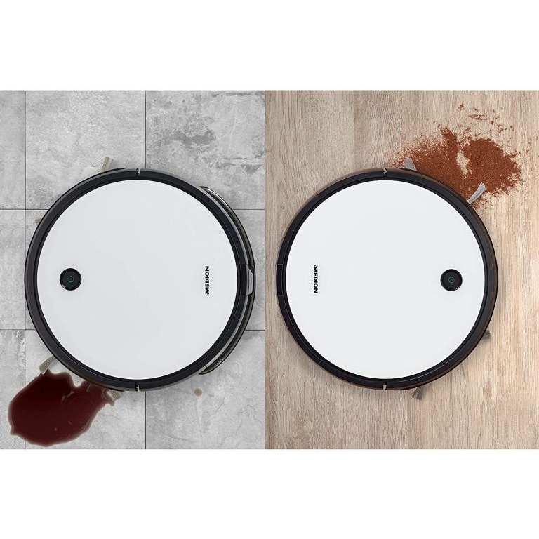 ♻️ Công suất hút có thể điều chỉnh. Hoạt động hiệu quả trên nhiều loại sàn: sàn gỗ, thảm, sàn gạch…, thậm chí bạn có thể đặt robot Medion MD20041 trên bàn, ghế sofa. Thiết kế nhỏ gọn dễ dàng hút sạch bụi bẩn và lau sạch ở những nơi ẩm thấp như gầm giường, gầm tủ.