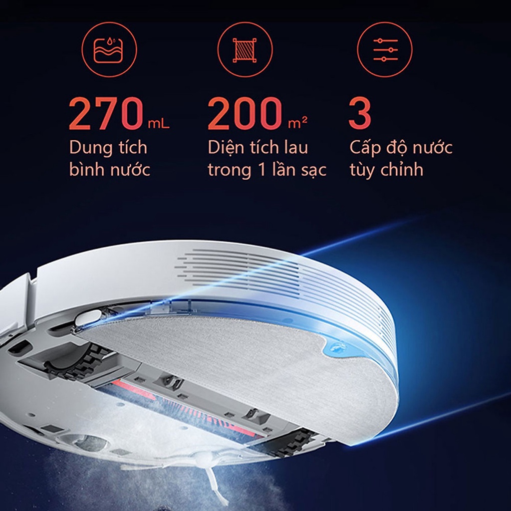 - Lực hút 3000Pa – Hút sạch các hạt bụi mịn ngay cả dưới rãnh sâu