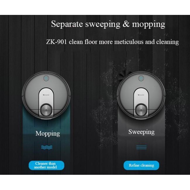 Các tính năng thông minh của Liectroux ZK901Chức năng: Hút bụi, lau ướt, lau khô-Chế độ làm sạch: Xoắn ốc, cạnh tường, zig-zag, tự động-Kiểm soát quá trình phun nước thông minh theo từng loại mặt sàn, chống trơn trượt, chống rỉ nước khi Robot ngừng hoạt động, giúp phòng tránh hỏng sàn nhà gỗ.-Công nghệ Laser hiện đại sẽ quét toàn bộ căn phòng để tạo ra một bản đồ hoạt động. Bản đồ này sẽ bao gồm chu vi hoạt động, các vật cản có trong căn phòng, các vị trí cửa ra vào, cầu thang… Từ đó Robot sẽ tiến hành dọn dẹp căn phòng theo bản đồ làm việc mà quét laser thu được.-CHIP xử lí thông minh định hướng đường đi, giúp cho Liectroux ZK901 Robot luôn kiểm soát được quá trình lau dọn tuyệt đối sạch sẽ, phân biệt được sàn nhà và theo sát những khung đường nhà còn bẩn.-Công nghệ 4.0 khiến cho Robot Liectroux ZK901 luôn nhận diện thông minh, phân vùng lau dọn, lựa chọn khu vực làm sạch từng không gian, giúp bạn chủ động dọn dẹp theo ý muốn-Quản lý, theo dõi chế đọ làm việc của Robot qua app điều khiển từ xa-Tính năng vượt vật cản, tối đa 20mmVới giá tầm trung, Robot hút bụi lau nhà Liectroux ZK901 là 1 sự lựa chọn tối ưu cho bạn với nhiều tính năng hiện đại được tích hợp.
