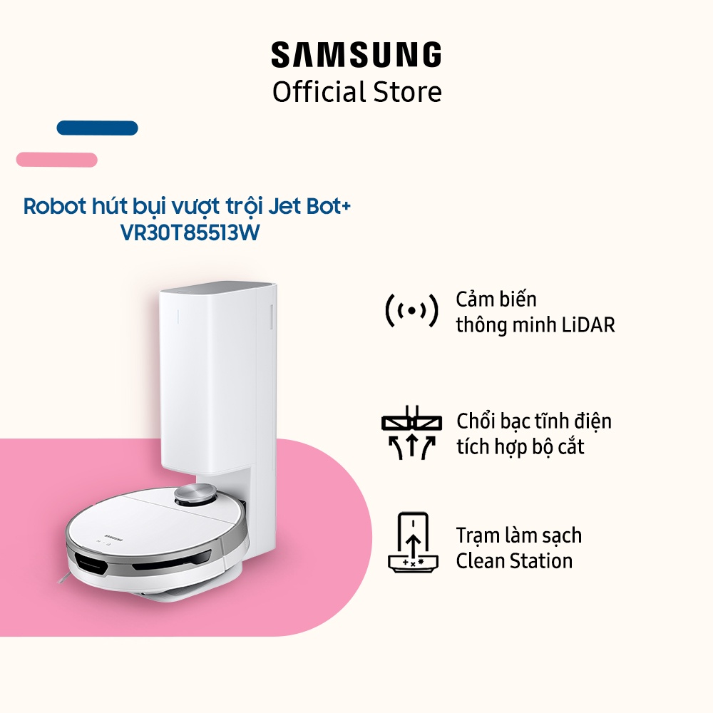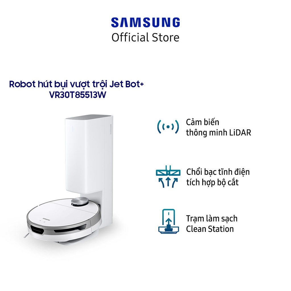 Thiết Bị Điện Gia Dụng > Thiết bị điện gia dụng nhỏ > Máy hút bụi & Thiết bị làm sạch sàn || [Mã ELSS1TR giảm 5% đơn 3TR] Robot hút bụi vượt trội Samsung Jet Bot+ (VR30T85513W)Còn hàng