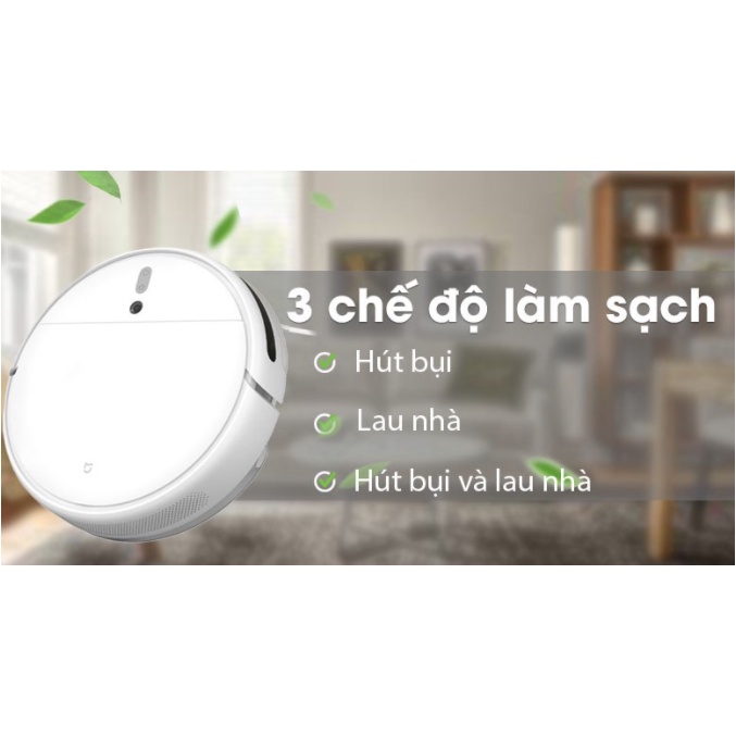 - Robot hút bụi Xiaomi Vacuum Mop sở hữu 3 chế độ làm sạch, có chức năng lau nhà, tự động điều khiển được lượng nước hợp lý.