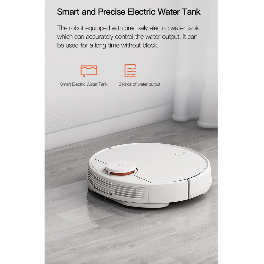 -Điểm nhấn của Robot hút bụi Xiaomi lần này chính là có thể vừa hút bụi vừa lau sàn cùng một lúc, hộp chứa bụi và chứa nước được tích hợp 2 trong một, với dung tích mỗi hộp lên đến 550ml. Đặc biệt bình nước có ba chế độ nước khác nhau với 3 chế độ lau: vừa hút vừa lau, chỉ hút bụi, chỉ lau nhà và có thể dùng cho cả sàn gỗ.