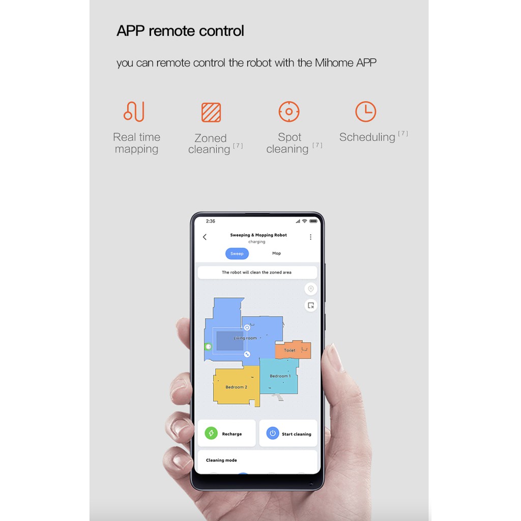 -Ngoài ra, bạn hoàn toàn có thể điều khiển Robot hút bụi Xiaomi Vacuum Mop Pro thông qua ứng dụng Mi Home với nhiều tính năng như điều khiển từ xa, dọn dẹp khu vực nhất định, hẹn giờ,… giúp bạn tiết kiệm thời gian để có thể thực hiện những công việc khác.