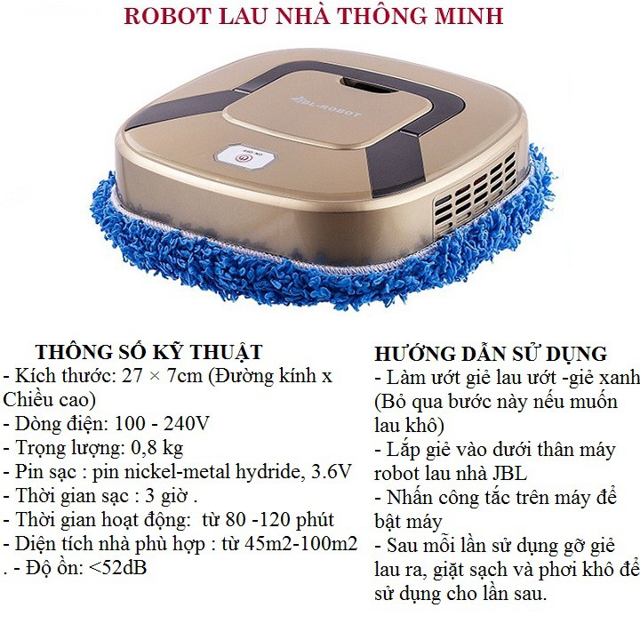 Robot lau nhà tự động, bộ máy lau sàn nhà thông minh dùng pin sạc gia dụng nội địa Trung là vật dụng giải phóng chị em khỏi công việc lau nhà hằng ngày, dành thời gian cho việc thư giãn, thể thao...robot lau nhà này sẽ tự động làm sạch nhà chỉ với một nút chạm.Các tính năng ưu việt của robot lau nhà