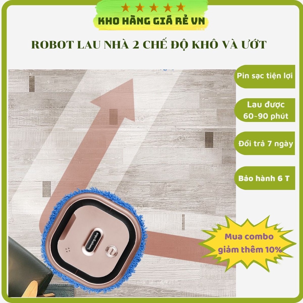 Robot lau nhà tự động, bộ máy lau sàn nhà thông minh 2 tính năng lau khô ướt dùng pin sạc gia dụng nội địa Trung
