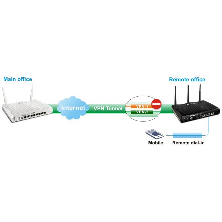 VPN 50 kênh( GRE, IPSec(IKEv1, IKEv2, EAP), SSL, PPTP, L2TP), VPN Trunking (LoadBalance/Backup), VPN qua 3G/4G(Dial-out).