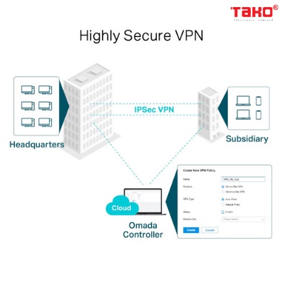 - Hỗ trợ IPSec / PPTP / L2TP VPN qua các giao thức IPSec / SSL. Với thiết kế phần cứng mạnh mẽ, bộ định tuyến hỗ trợ và quản lý tới 100 × LAN-to-LAN IPSec, 50 × OpenVPN *, 50 × L2TP và 50 × PPTP VPN kết nối.