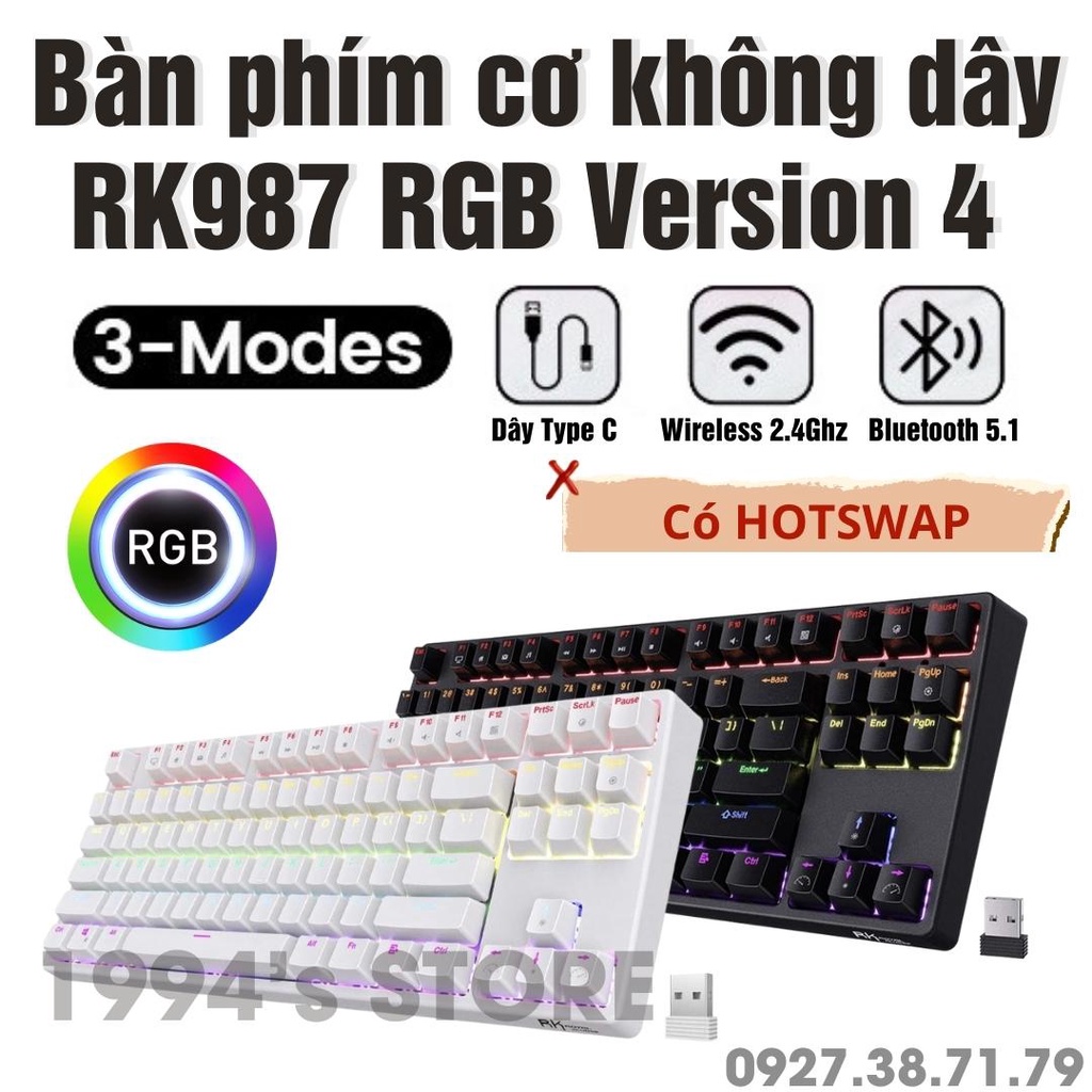 Royal Kludge RK987 Version 4 - Bàn Phím Cơ Không Dây RK987 Ver.4 Bluetooth 5.1 + Wireless 2.4G + Có dây Type C + Hotswap