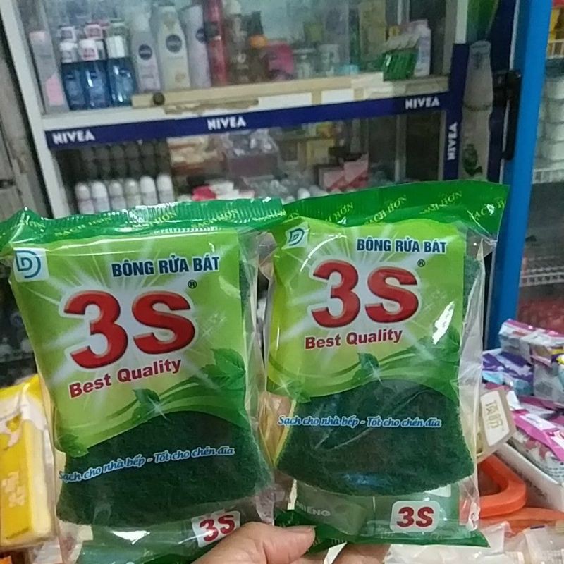 Bông rửa bát 3S. Sạch cho nhà bếp, tốt cho chén đĩa.Công dụng: Loại khổ vừa đặc biệt thích hợp trong việc chùi rửa và làm sạch các dụng cụ nhà bếp, chén, đĩa...