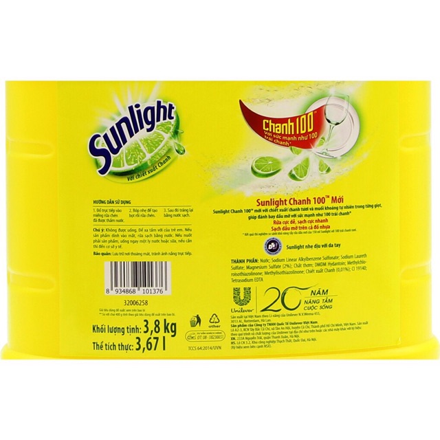 Nước Rửa chén bát Sunlight 3.8kgĐánh bay vết bẩn nhanh chóng