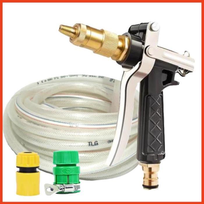 Rửa xe tưới cây Bộ dây và vòi xịt tăng áp lực nước 300% loại 25m cút nhựa,nối nhựa 206236