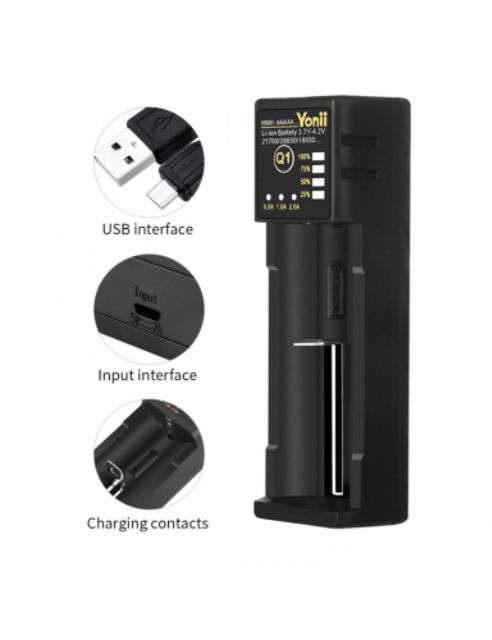 Giới thiệu [S3] Sạc pin đa năng Yonii Q1 Plus USB 2A 3.7V 1.2V Aa aaa 14500 18650 21700 LI-ION/NI-MH/NI-CD bản nâng cấp của lii-100