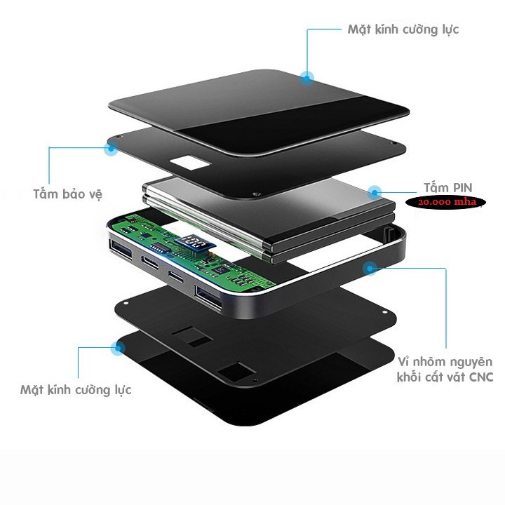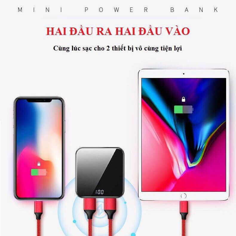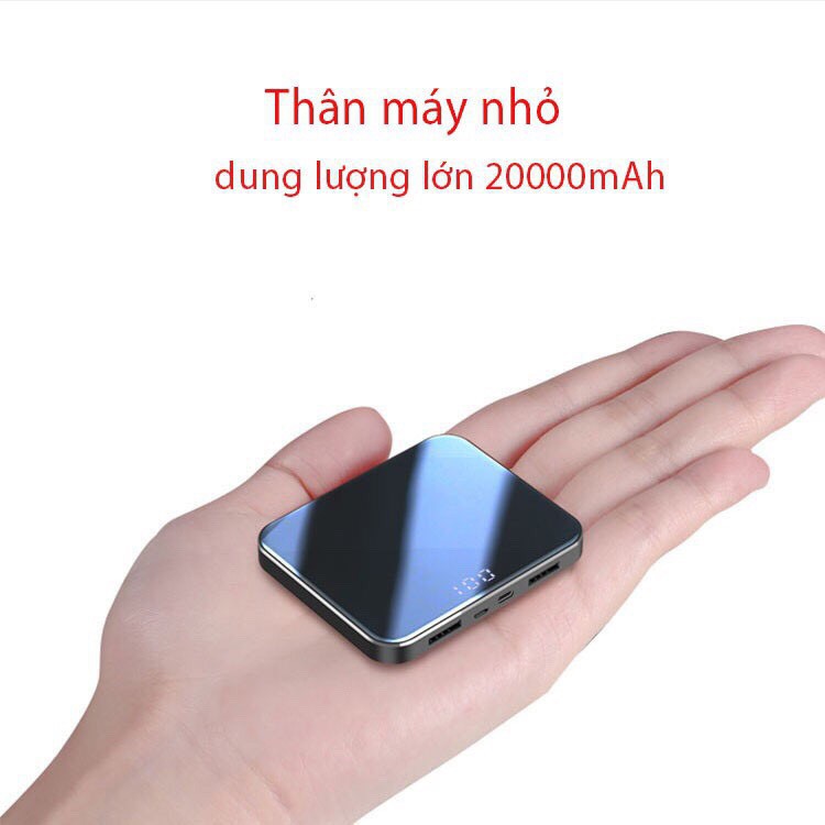 Sạc dự phòng Mini dung lượng lớn 20.000 mAh, công nghệ đột phá cho cuộc sống hiện đại. Với công nghệ chế tạo mới nhất hiện nay, sạc dự phòng tuy kích thước rất nhỏ, chỉ bằng 1/2 chiếc điện thoại nhưng có dung lượng rất lớn. Cực kỳ tiện lợi khi mang đi chơi, đi du lịch, đi làm. Tạm biệt ngay cục gạch vừa nặng vừa to mỗi khi nghĩ đến sạc dự phòng.Kích thước siêu nhỏ chỉ 80x80mm, độ mỏng 15mm