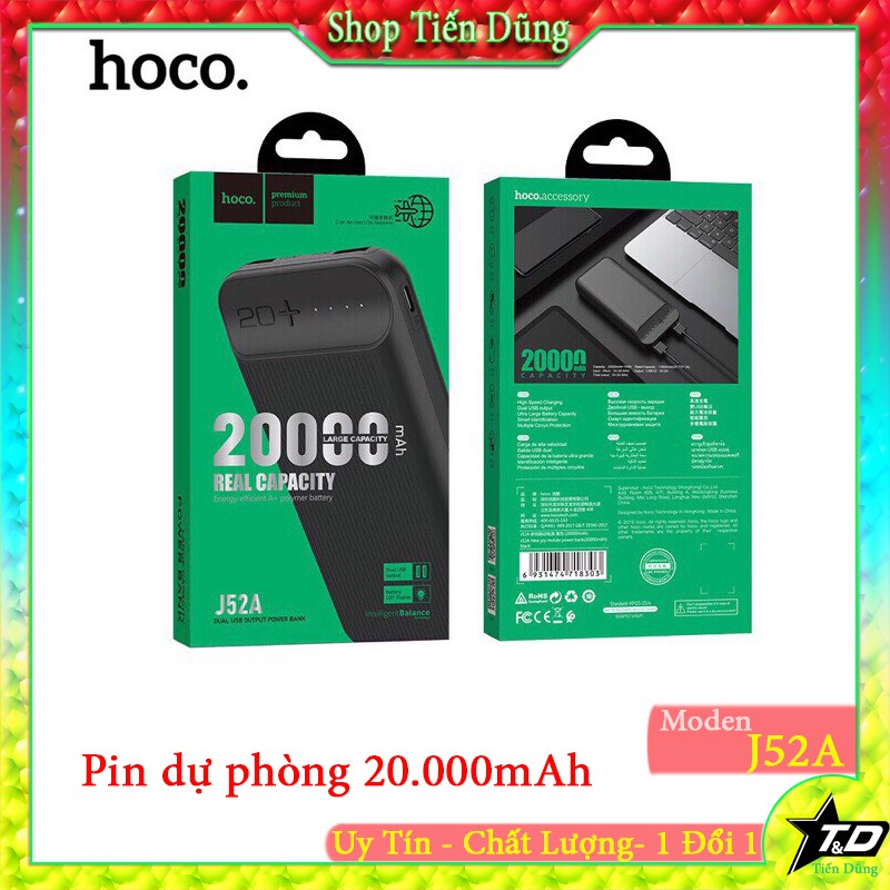 Điện Thoại & Phụ Kiện > Phụ kiện > Sạc dự phòng & Pin > Sạc dự phòng || Sạc dự phòng hoco J52A dung lượng 20.000mAhCòn hàng