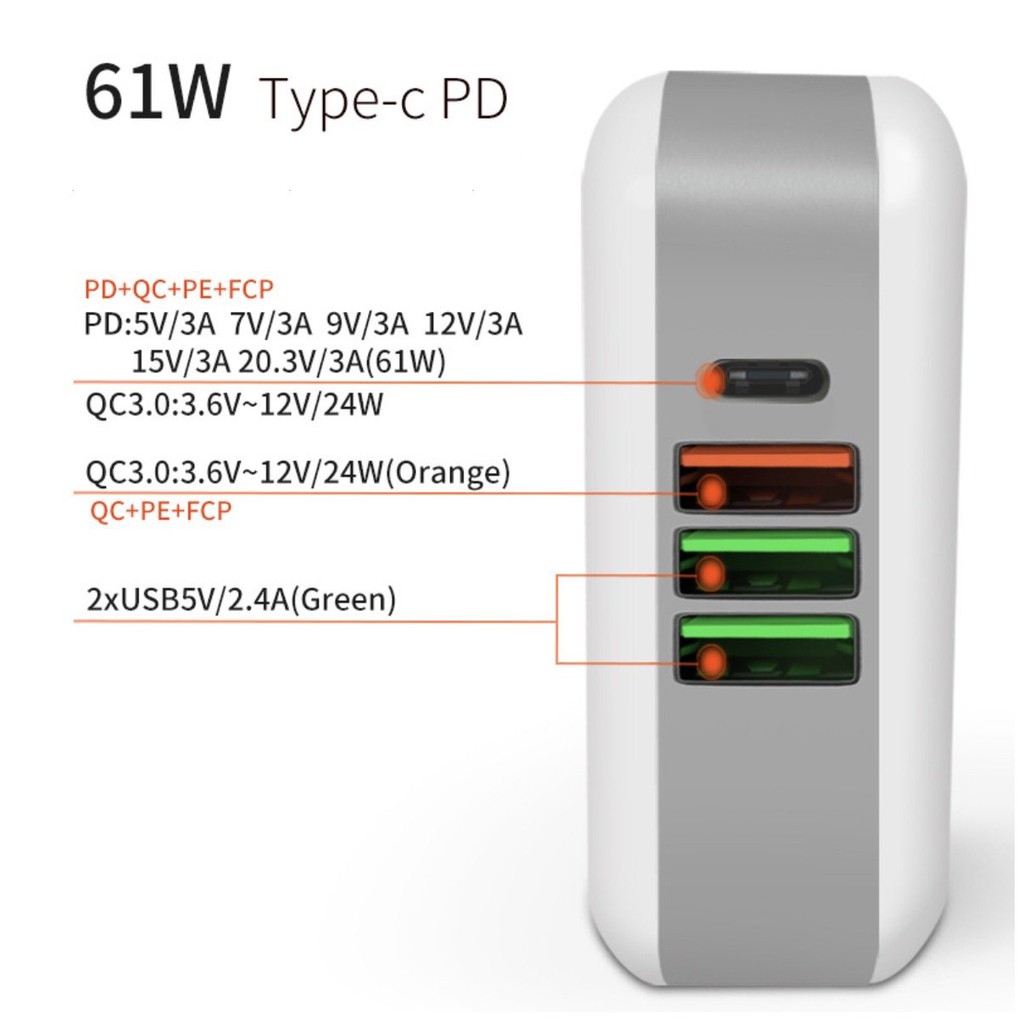 Sạc Đa Cổng Macbook 61W Multi-port Charger PD Type-C QC3.0 hỗ trợ sạc nhanh (Đạt chuẩn CE, RoHS) - HanruiOffical