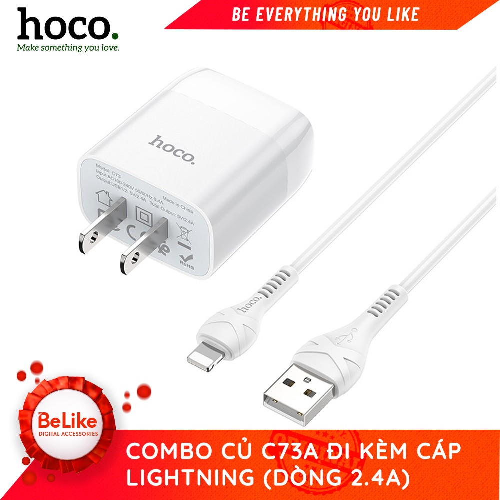 Sạc Điện Thoại Iphone & Ipad Hoco C73, Sạc Nhanh 12W, Tặng Kèm Cáp Sạc Lightning - Hàng Chính Hãng