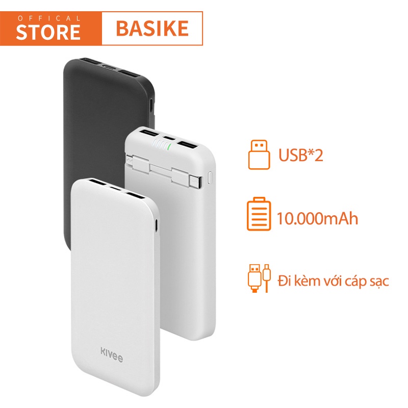Sạc dự phòng 10000mAh BASIKE USB*2 Cho iPhone Huawei Samsung - Bảo hành 12 tháng
