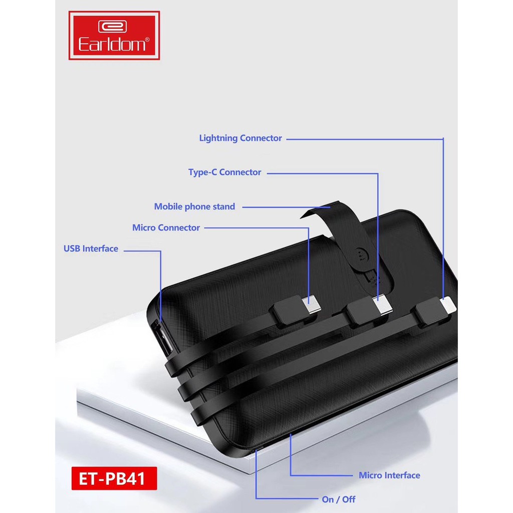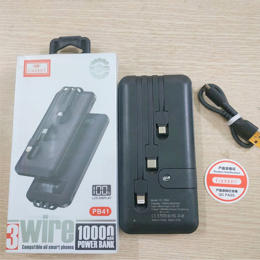 Điện Thoại & Phụ Kiện > Phụ kiện > Sạc dự phòng & Pin > Sạc dự phòng || Sạc dự phòng 10000mAh Earldom PB41, pin tích điện dung lượng cao kèm 3 đầu cáp KLH shopCòn hàng