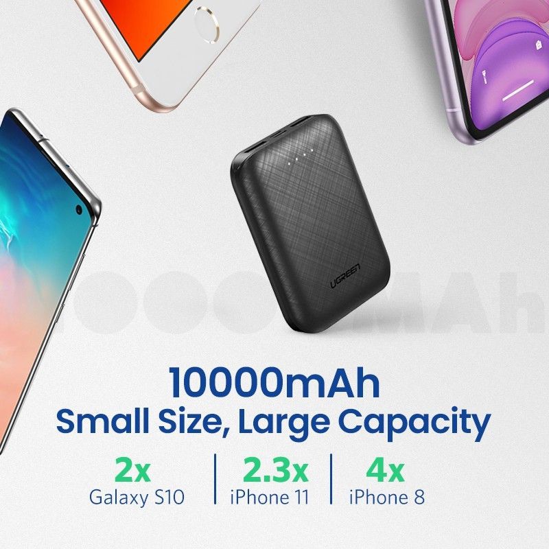 ĐỒ SẠC MANG ĐI: Pin sạc dự phòng UGREEN 10000mAh dung lượng cao thiết kế nhỏ gọn bỏ túi, khối lượng 182g, sản phẩm lý tưởng để mang theo khi di chuyển lên các thiết bị kỹ thuật số;