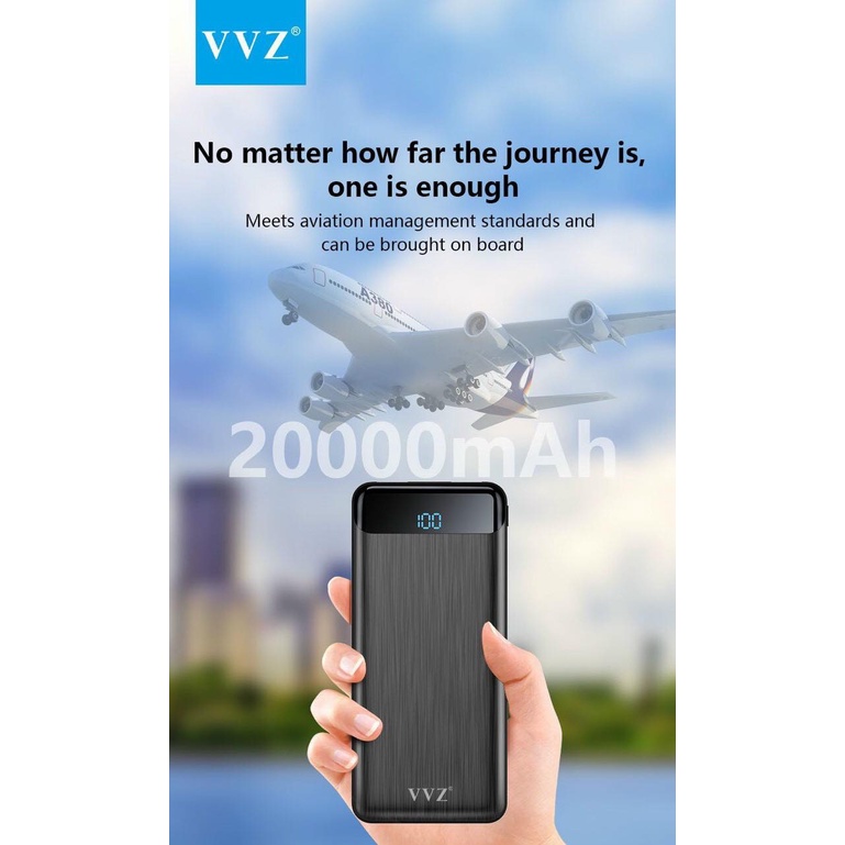 Sạc Dự Phòng 20000 mAh Chính Hãng VVZ Công suất 2.1A Lõi Pin POLIMER LITHIUM Chuẩn Dung Lượng