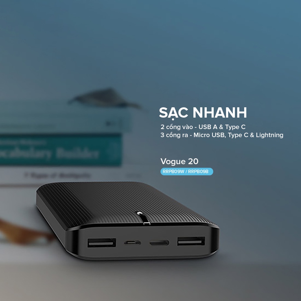 SẠC DỰ PHÒNG 20000mAh ROCKROSE VOGUE 20 - CỔNG USB A SẠC NHANH CHO IPHONE/ ANDROID- Màu sắc: Black, White