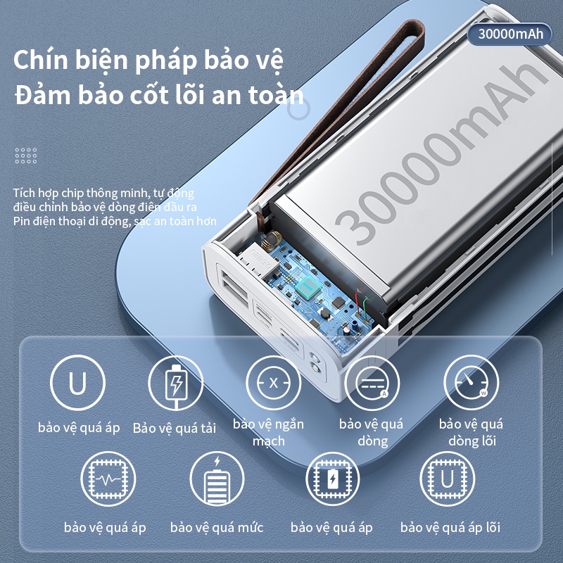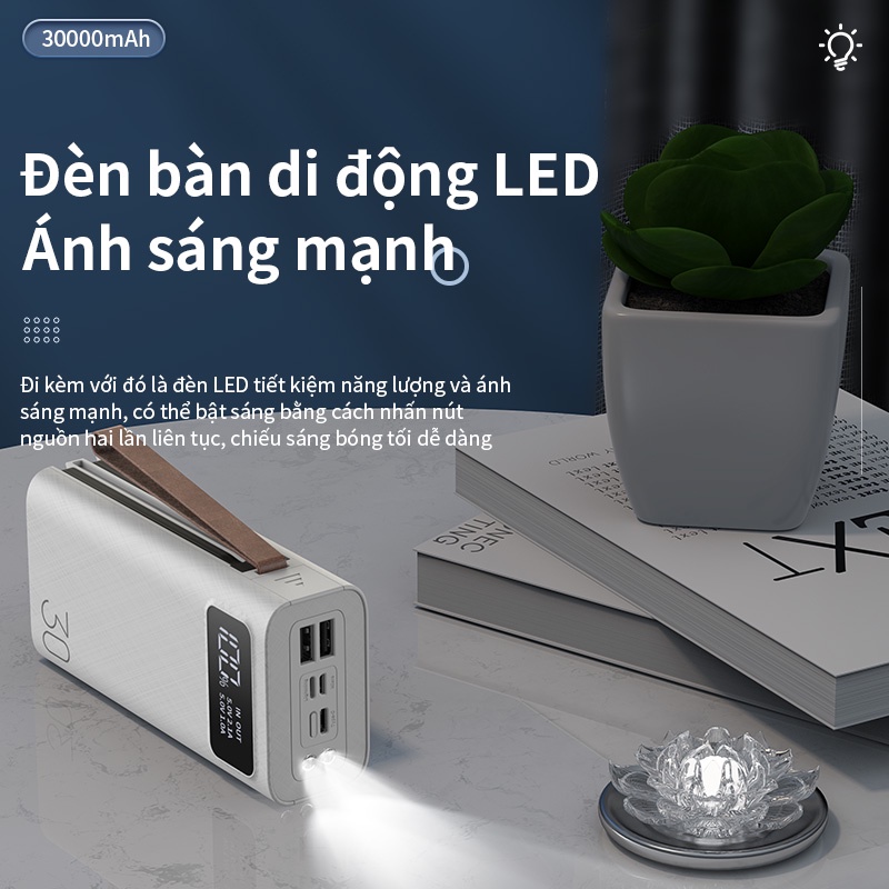 Điện Thoại & Phụ Kiện > Phụ kiện > Sạc dự phòng & Pin > Sạc dự phòng || Sạc dự phòng 30000mAh BASIKE PT302P có Cáp Sạc, đèn pin, giá đỡ điện thoại, dây buộc cho iPhone Huawei SamsungCòn hàng