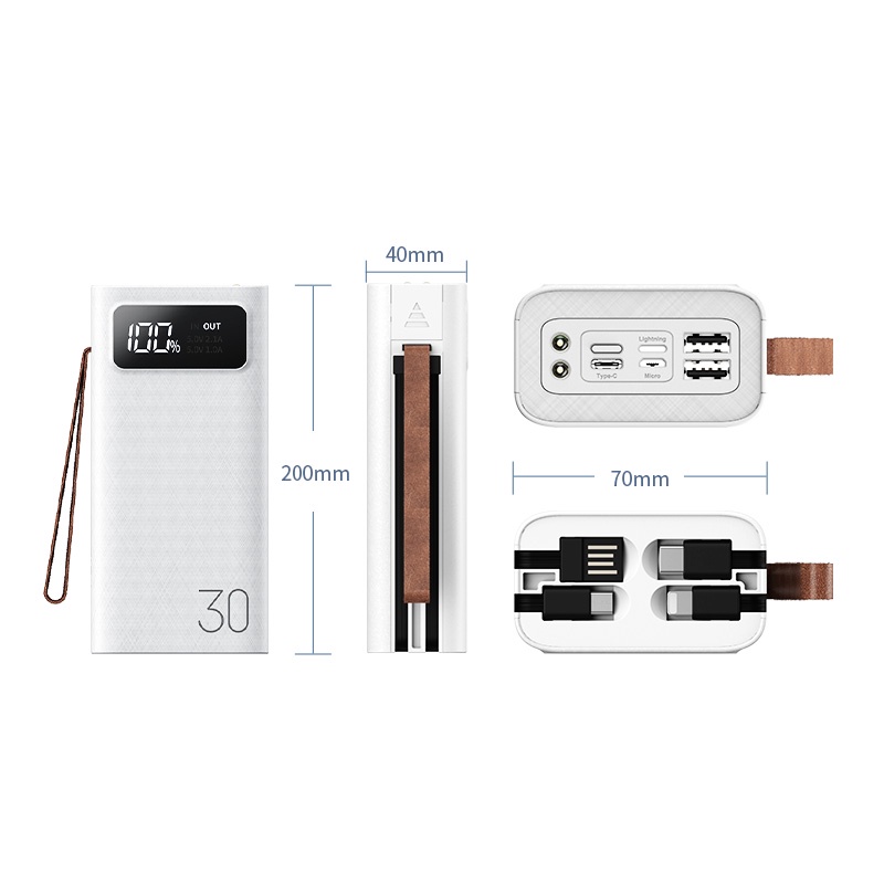 ✔️ Tặng kèm cáp đầu vào USB, cáp sạc Type-C / iPhone / Micro. Không cần mang thêm cáp sạc khi ra ngoài, giúp việc di chuyển trở nên dễ dàng hơn