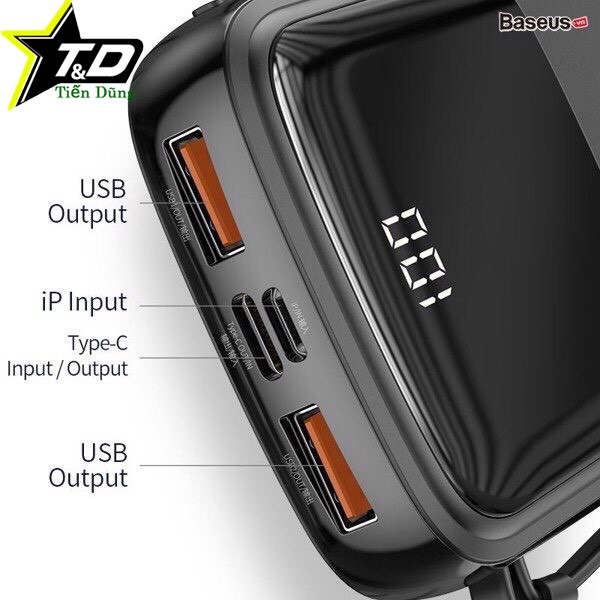 Sạc dự phòng baseus 10000 sạc nhanh dòng 15W - Pin sạc dự phòng kèm dây sạc iPhone hoặc Micro