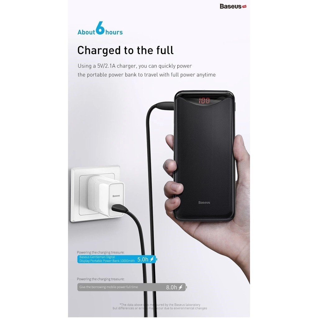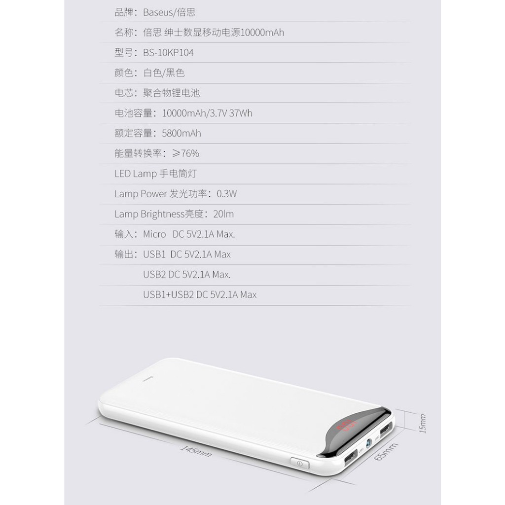 Sạc dự phòng Baseus Gentleman 10000mAh - Có đèn LED - 2 cổng USB - Nhỏ Gọn MART CASE----------------