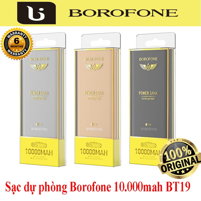 - PIN SẠC DỰ PHÒNG 10000mAh (CHÍNH HÃNG) BOROFONE BT19A là thương hiệu rất được ưa chuộng đến từ HongKong.- Thiết kế VỎ NHÔM ĐẸP MẮT sang trọng cũng là phần mạnh nhất của sản phẩm dùng TẢN NHIỆT TỐT cho pin trong lúc làm việc.