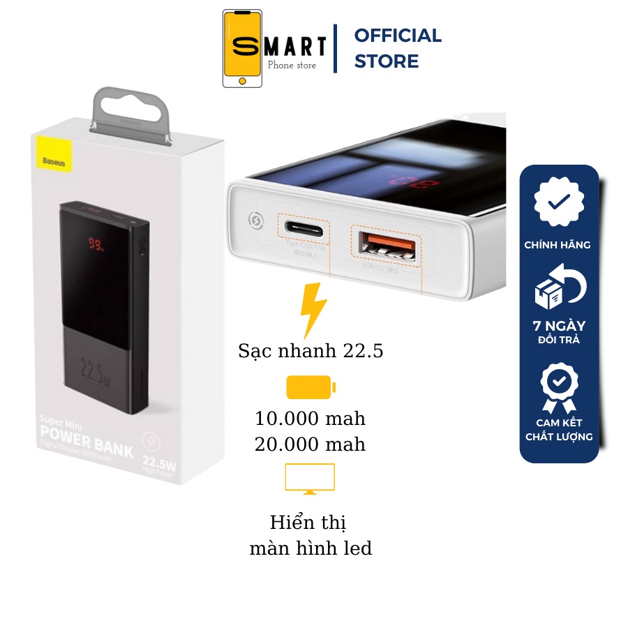 Sạc dự phòng dung lượng 10000mah super mini power sạc nhanh 22.5w màn hình led chính hãng baseus - SPK Official