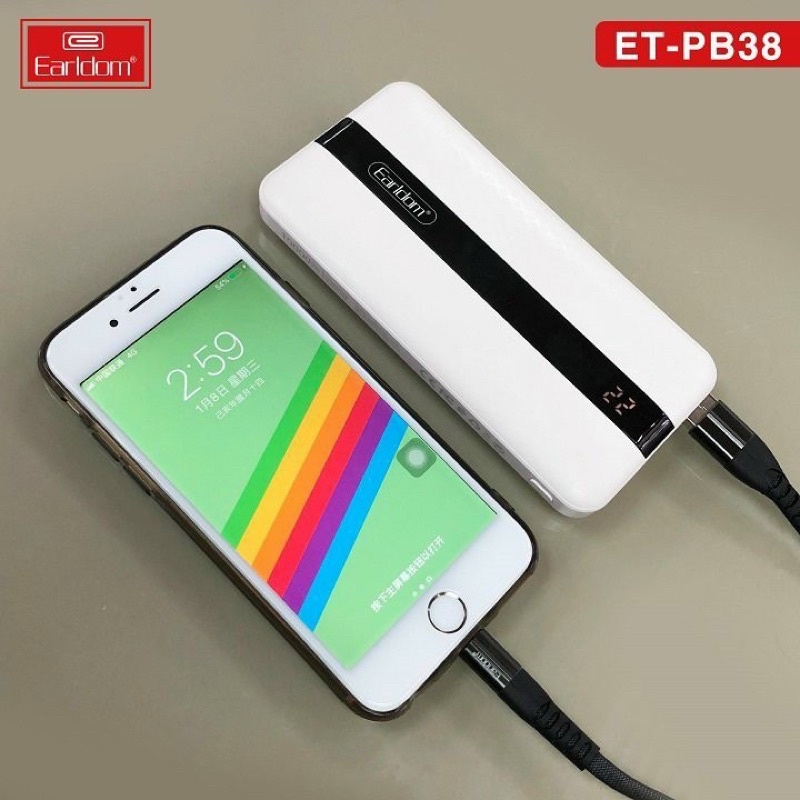 Sạc Dự Phòng Earldom ET-PB38 10.000mah Có Đèn Led Hiển Thị Phần Trăm Pin Công Suất Sạc 2.1A💥 SẠC DỰ PHÒNG EARLDOM ET- PB38
