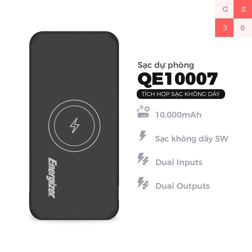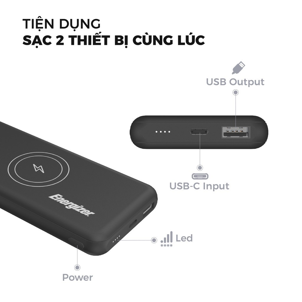 Điện Thoại & Phụ Kiện > Pin sạc dự phòng > 5000 - 10000mAh || Sạc dự phòng Energizer 10,000mAh /3.7V Li-Polymer - QE10007BK - tích hợp không dây - Hàng chính hãngCòn hàng
