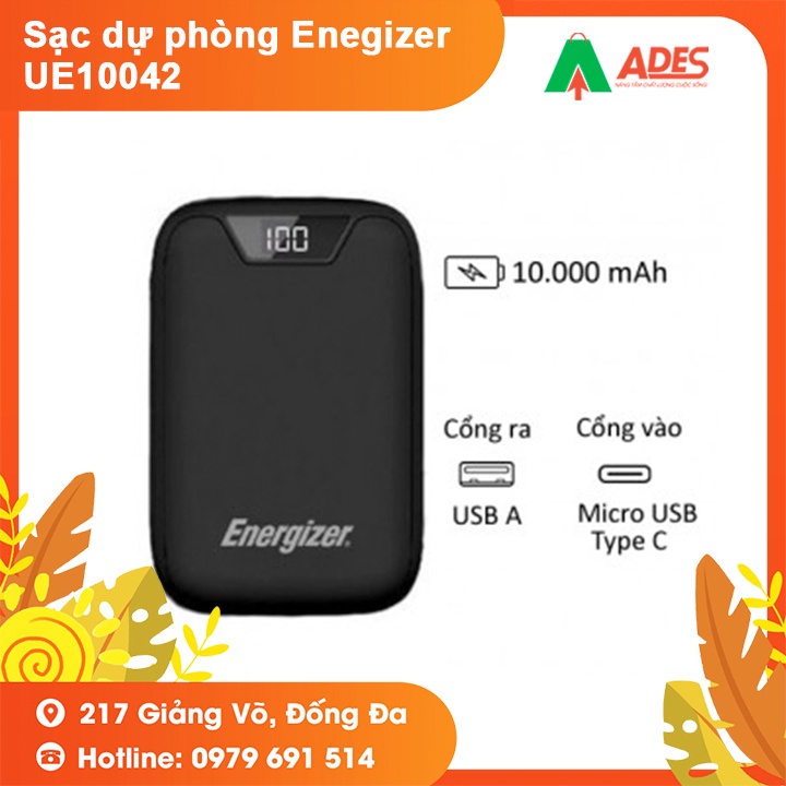 Điện Thoại & Phụ Kiện > Phụ kiện > Sạc dự phòng & Pin > Sạc dự phòng || Sạc dự phòng Energizer UE10042 10,000mAh - Thiết kế siêu gọn nhẹ, 2 cổng input tiện dụng & chuẩn sạc nhanh Fast ChargeCòn hàng
