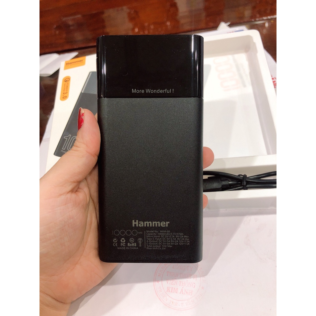 Sạc Dự Phòng Hammer (H08) Li-Ion - Polymer 10.000mAh, Sạc nhanh QC 3.0,PD 18w, LCD -Chính Hãng, bảo hành 12 tháng